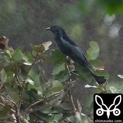 仕事中、仲間内の連絡網に「カンムリオウチュウ確認」と着信。そわそわしながら、仕事を終えると連絡から2時間遅れでなんとか現場へ到着。強い雨と風の中、カンムリオウチュウの姿を見ることができました!!