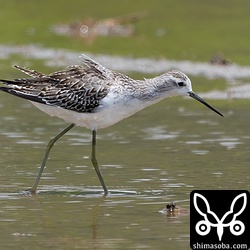 チュウジシギ成鳥。冬羽へ換羽中です。