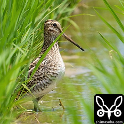 タシギは数羽が草むらで休んだり、田んぼで餌探ししたりしていました。