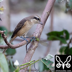 なんとシマアカモズ幼鳥がギンヤンマを捕まえた!!