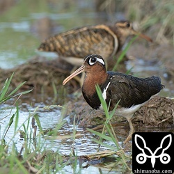 ペアで行動をともにするタマシギ。