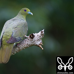 キンバトは新居近くで毎日、オス個体が現れます。雨が降ると電線や枯れ木にチュウダイズアカアオバトがたくさん並びます。