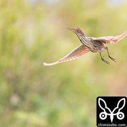 歩行者に驚いて飛び上がったリュウキュウヨシゴイのメス。
