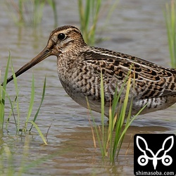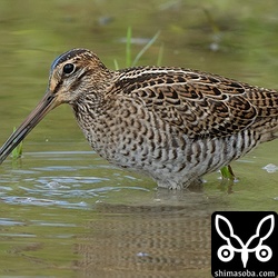 数十羽のジシギを見続けて、やっと絞り出したハリオシギ。
