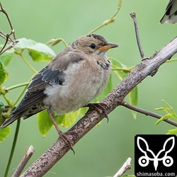 バライロムクドリ幼鳥。幼羽から第1回冬羽へ換羽中です。