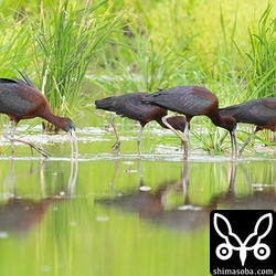 4月1日に石垣島に飛来したブロンズトキは、1カ月の滞在となりました。以前は、常に19羽の群れで行動していましたが、ここ数日は分散して過ごしています。2羽仲良く連れ立って餌探しする個体もいて繁殖の予感がしています。^^