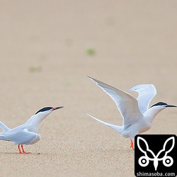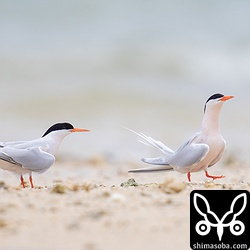 ベニアジサシの求愛。左がオスで右がメスです。