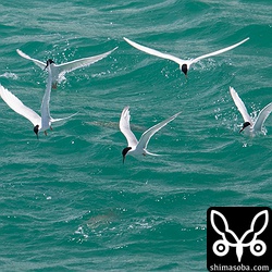 石垣島では、7月の終わりごろになるとクロハラアジサシの秋の渡りが始まることによって、夏の間、八重山で繁殖しているオオアジサシ、ベニアジサシ、エリグロアジサシ、コアジサシと合わせて5種類のアジサシたちが観察できます。