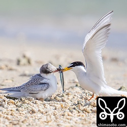 沖縄で繁殖するアジサシの中で一番にシーズンインしたコアジサシは、今、巣立ちの最盛期を迎えています。あちこちの海岸に子連れのコアジサシがいました。