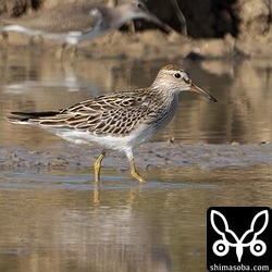 アメリカウズラシギの幼鳥が2羽飛来しました。ぴかぴかの幼羽で美しい個体です。アメリカウズラシギを見ているとカタグロトビが定時よりも早く登場。狩りをすることなく、すぐにいなくなってくれました。^^;