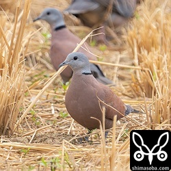 ベニバトがオスとメスで飛来。収穫前の米をキジバトとともに食っていました。
