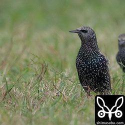 ホシムクドリは二つの群れを合わせて40羽ほど。その中にムクドリが数羽交じっていました。
