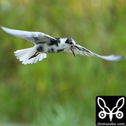 クロハラアジサシ冬羽。バッタをとっていました。
