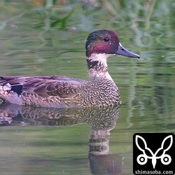 石垣島では珍しいヨシガモ。エクリプスから繁殖羽へ換羽中。