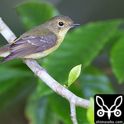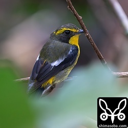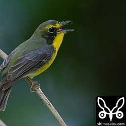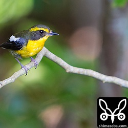 本土のキビタキとの違いは、鳴き声と喉から胸の色、背中の色です。本土のキビタキの鳴き声は複雑ですが、リュウキュウキビタキは「フィーフィー」と単純です。また、リュウキュウキビタキはキビタキのように喉にオレンジがかったところがなく、喉から股の間まで鮮やかな黄色です。そして、本土のキビタキの背中が黒いのに対し、リュウキュウキビタキはオリーブ色がかった黒で少しくすんでいます。