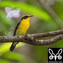 リュウキュウキビタキのオス。人に対する警戒心はそれほど強くないですが、藪の中で生活しているので声だけ聞こえて姿が見えないことが多いです。