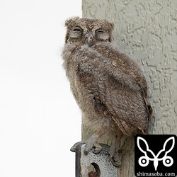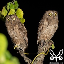 1カ月ほど前に掲載した標識付きのリュウキュウコノハズク が巣立ったヒナを連れて再び現れました。