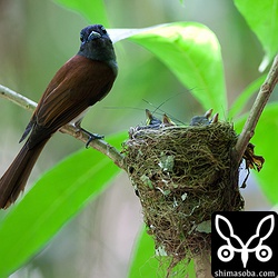 リュウキュウサンコウチョウの撮影をしてたら、親鳥たちが騒ぐのでおかしーなと思った矢先、リュウキュウツミがサンコウチョウの巣に止まるではないですか!! 親鳥たちはツミに猛攻撃を仕掛けます。