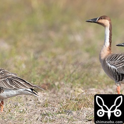 カリガネ2羽も逗留中で、こちらは10日目になります。相変わらずヒシクイと行動をともにしています。マガン12羽も飛来して一時は合流したのですが、結局別れて過ごしています。