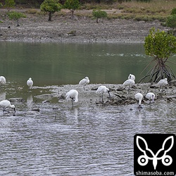 淡水の混じる海岸にトウネン、ヒバリシギ、ハマシギ、キョウジョシギ、キアシシギ、アオアシシギ、ムナグロ、メダイチドリ、シロチドリなどがいました。