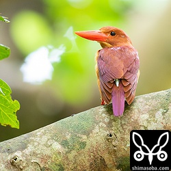 アカショウビンのメスと思われる個体。目先や目の後ろなどに白い羽が混じる個体です。