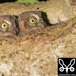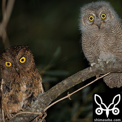 コノハズクではめずらしい親子でツーショット。^^ 600mmだと近すぎました。^^;
