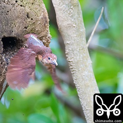昨夜巣立ったヒナ の巣ですが、次がなかなか出てきません。なんども登ろうとしているのですが、巣穴が深いようで…。