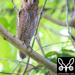 人工物に営巣していたコノハズク のヒナはやはり7/5の夜に巣立っていたようで、きょう、近くの木で見つけることができました。^^ もう1羽はまだ巣立っておらず、巣穴から上半身をのぞかせていました。