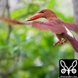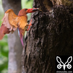 本日、アカショウビンのヒナ3羽が巣立ちました。2羽は私が現場に着く前に巣立ったようで、1羽はスコールが来て避難しつつ昼飯を食ってる間に巣立ってしまった模様です。巣立ちを促すためか巣穴から見える場所に親鳥が止まったり、餌をヒナの口に入れてもなかなか餌を離さない行動をしていました。