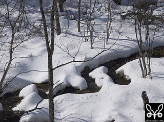 まだ、フクロウはおりました。^^ ほかは、アカゲラやハシブトガラなどがあたりをうろうろしていました。4人でフクロウと誰もいない雲ひとつない空と、静かな谷間、小さな動物たちの足跡などを堪能したところで、次の目的地へ向かいます。釧路空港近くのフクロウは留守でした。