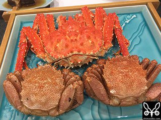 夕飯の時間になり、食堂へ行くとタラバガニと2匹の毛ガニがテーブルにどんと。ほかは、バイキング形式になっていましたが、酒のツマミのようなメニューが多くファミリーには向かないな。カニも冷凍だと思われる。