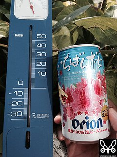 とりあえず「やいま村」のそば(八重山でそばと言えば、八重山そばが出され、ぜんざいといえば冷たい氷ぜんざいが出てくる)を食って腹ごしらえし、オリオンビールを2缶飲むことにする(ちなみに私は大のビール党)。空港のテラスに出て、持参したTANITAの湿度計付き寒暖計で外気温を計ると既に予報最高気温の24度に達している。靴は、北海道用のスノーブーツを履いてきているので足元が蒸れる。^^;