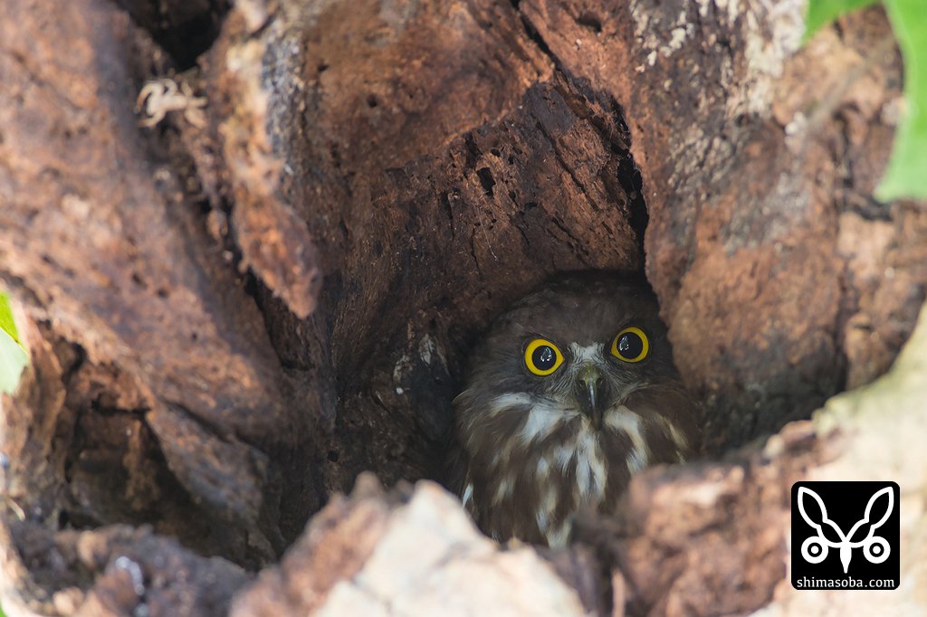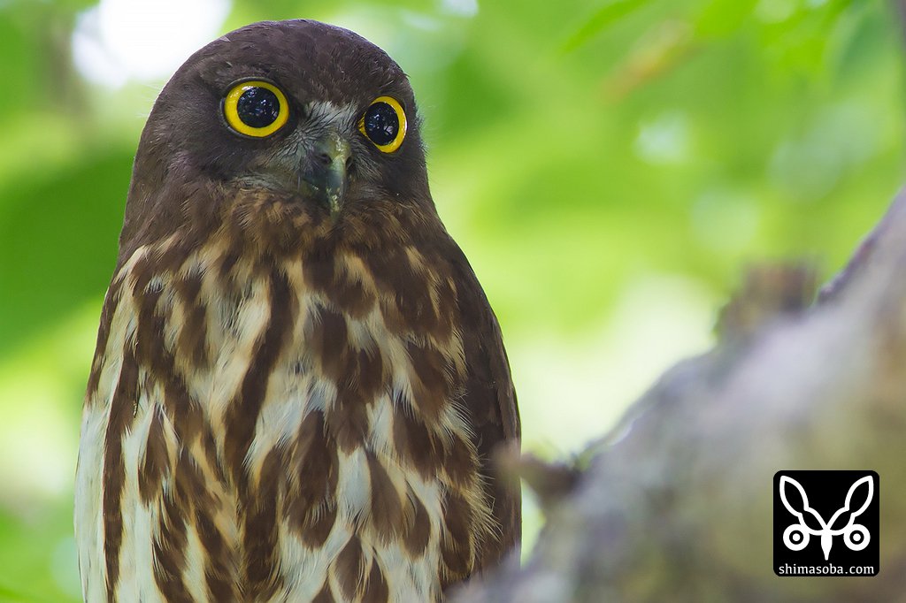このガラス玉のようなアオバズクの目がたまらないです。オスです。
