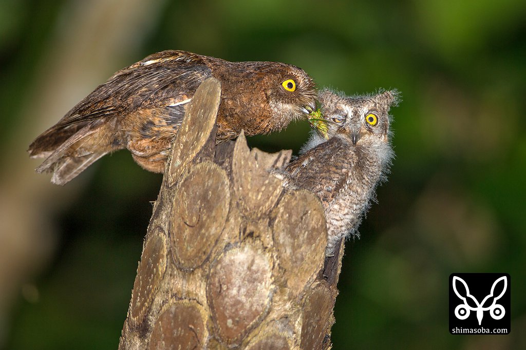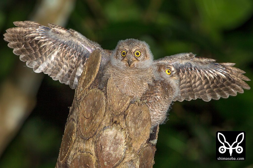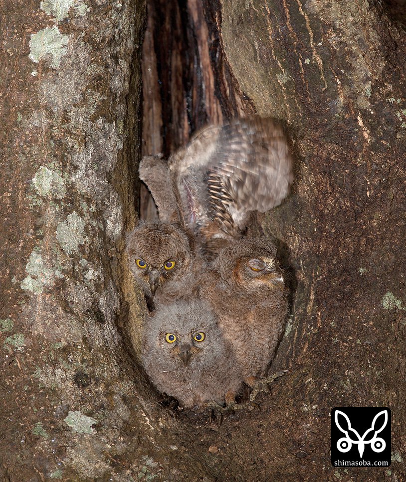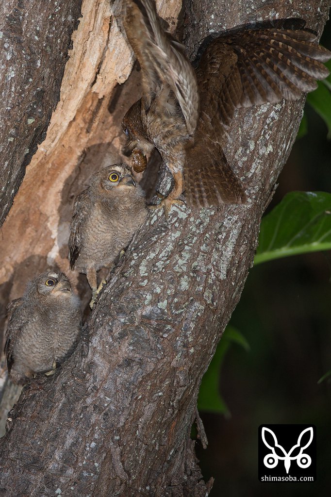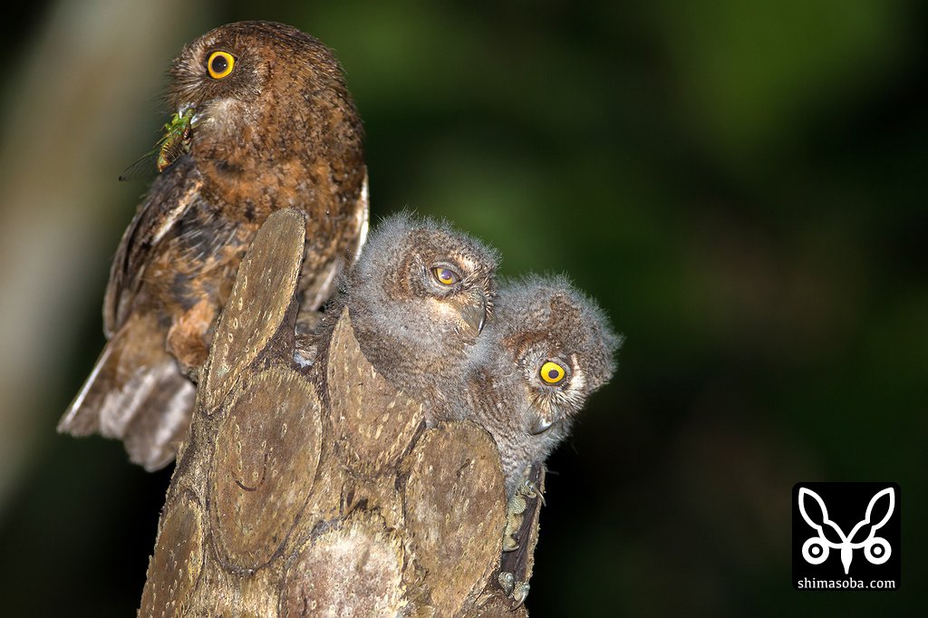 コノハズクの巣立ちビナが4羽。石垣島では3羽のことが多いのです。