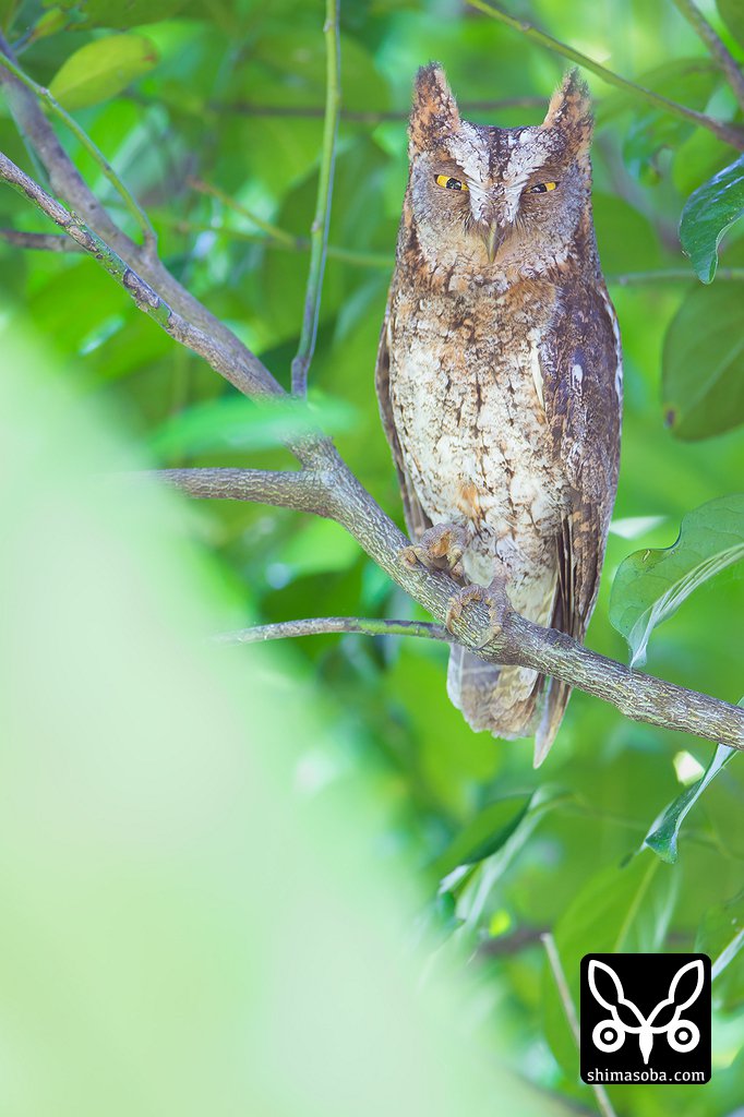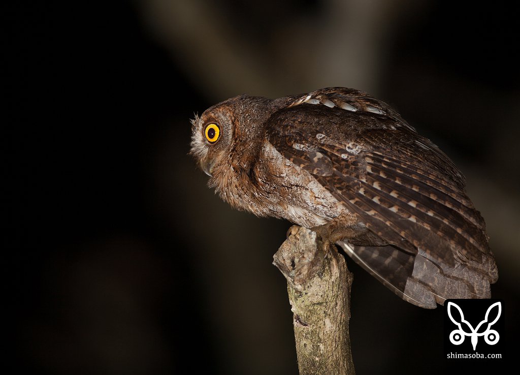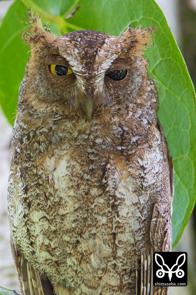 左目の黒いコノハズク。今まで、この個体でしか見たことがありません。