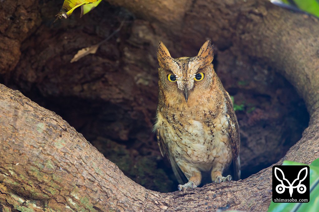 変わったところに営巣したリュウキュウコノハズク。ハスノハギリの太い幹のくぼみに営巣していました。