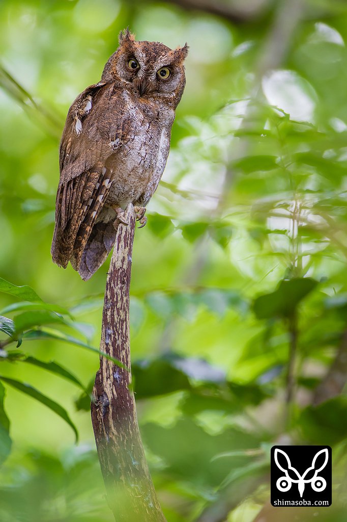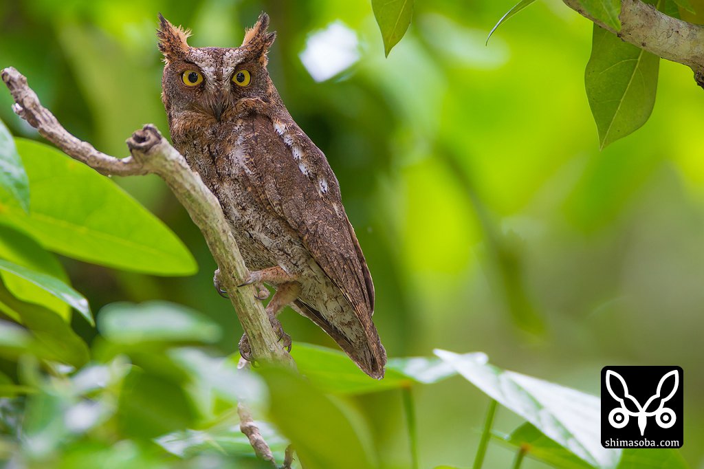 巣立った翌日のコノハズク。夜と違ってあまり可愛くないですね。